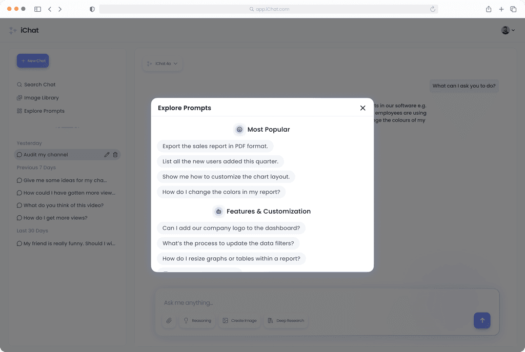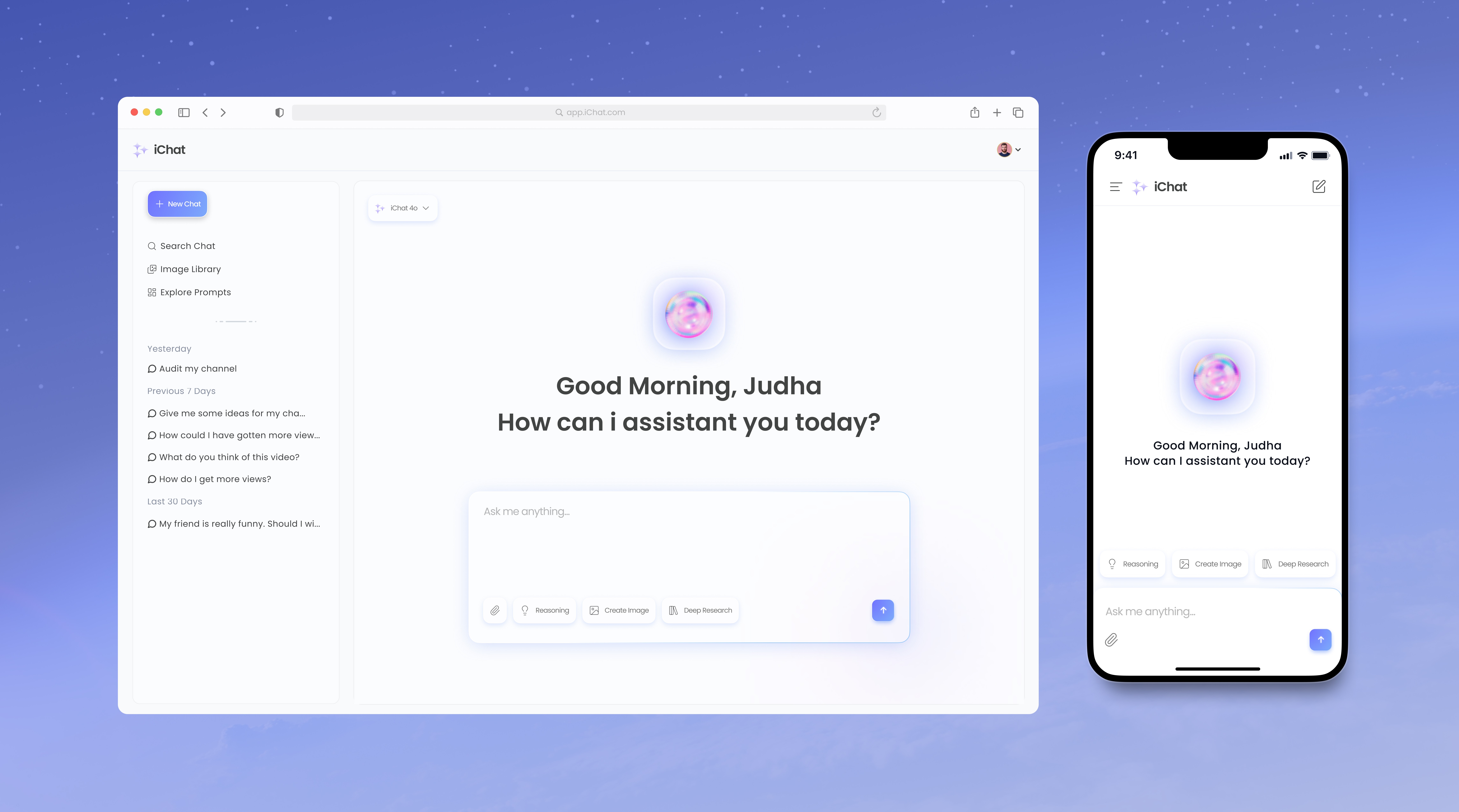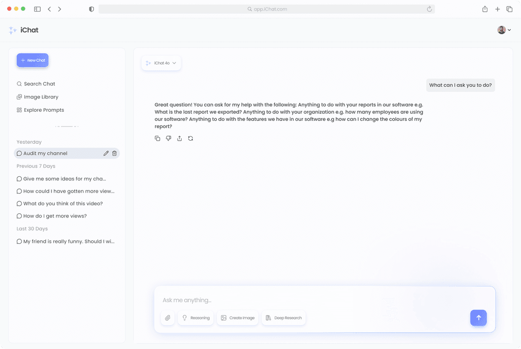 iChat is an AI-powered chatbot platform designed to facilitate seamless, real-time communication via text.