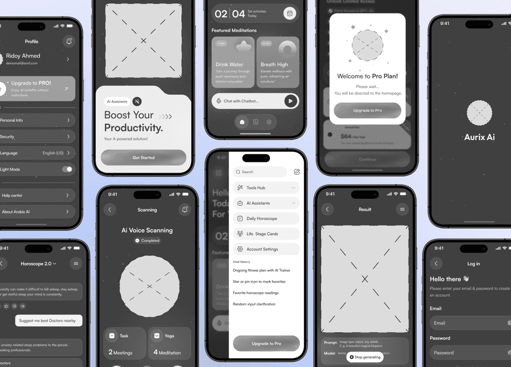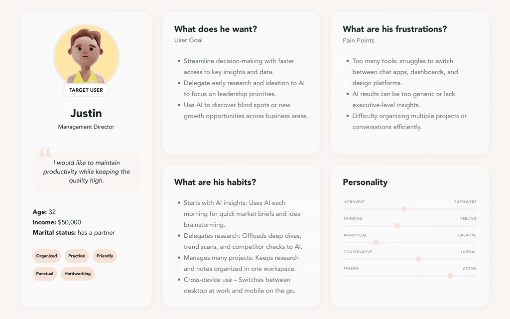 User flows. User persona. UI. Web & mobile screens. Design system.