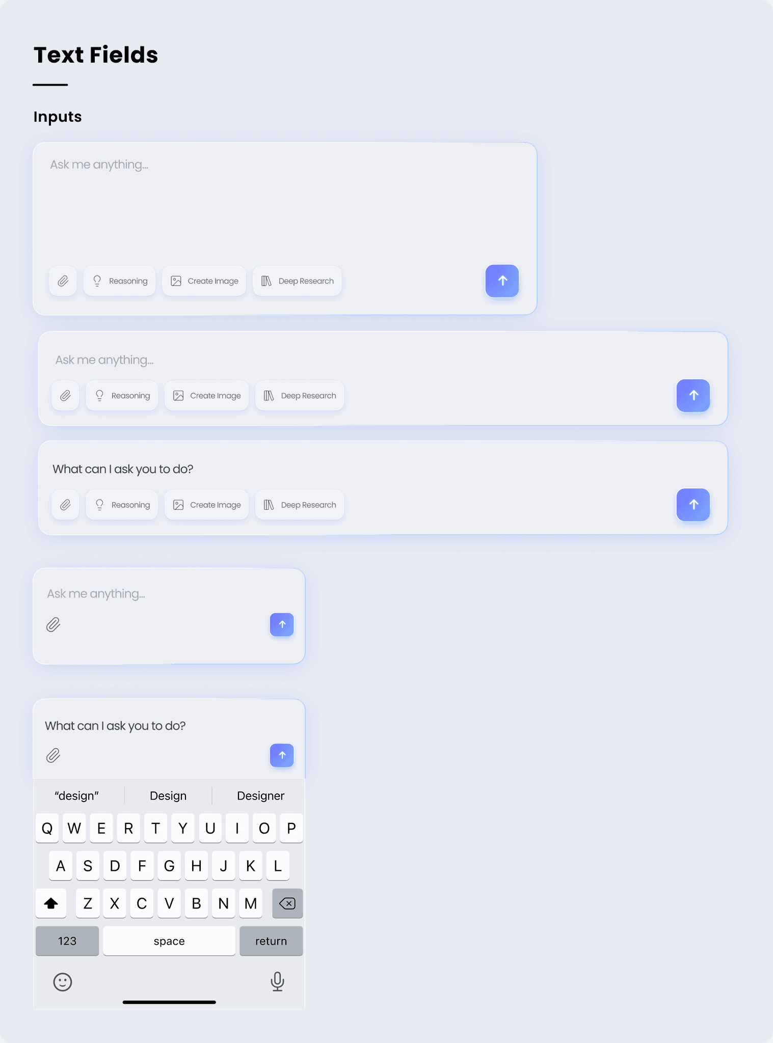 Create a clean, modern, minimal interface using blue and purple color scheme.