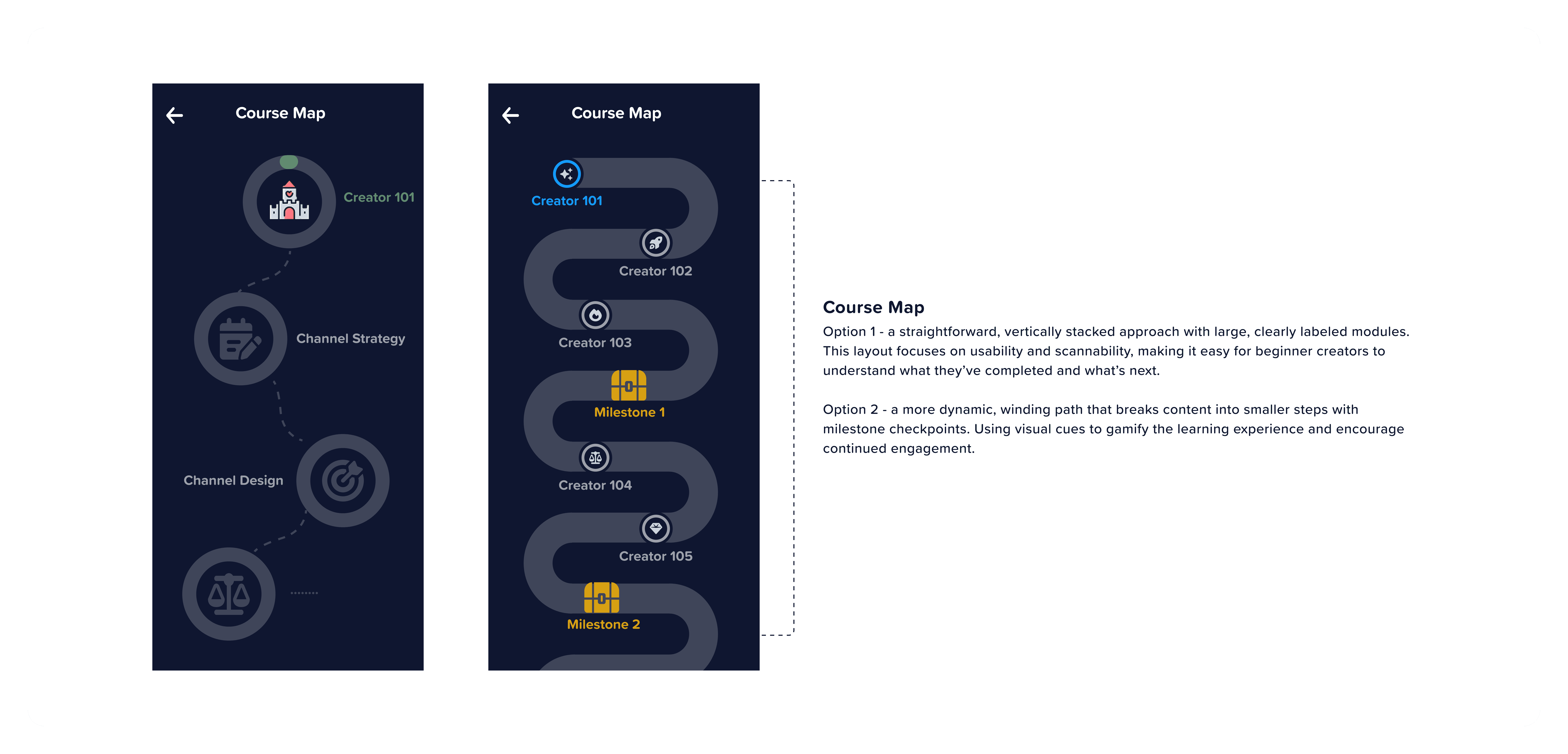 The course map allows the user to see what lies ahead and should ideally excite them for the future courses.
