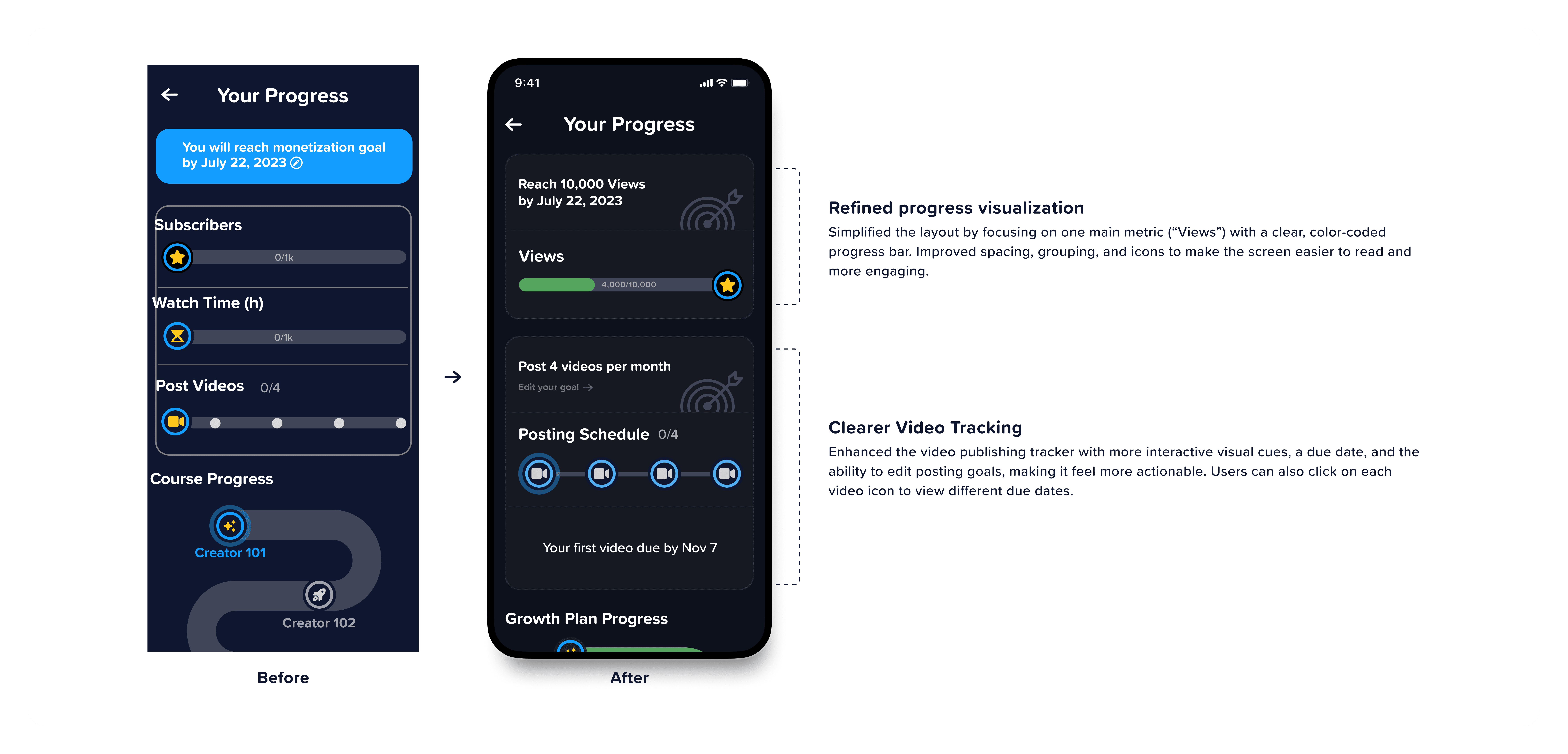 Shifted progress from status reporting to goal-oriented framing, helping users understand how far they are from a meaningful outcome rather than interpreting isolated metrics.