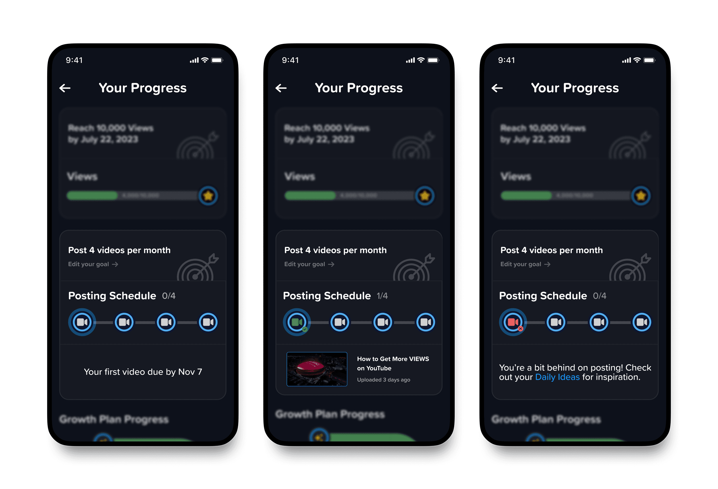 The goal could be X subscribers or X views, depending on what the user selected during the onboarding.