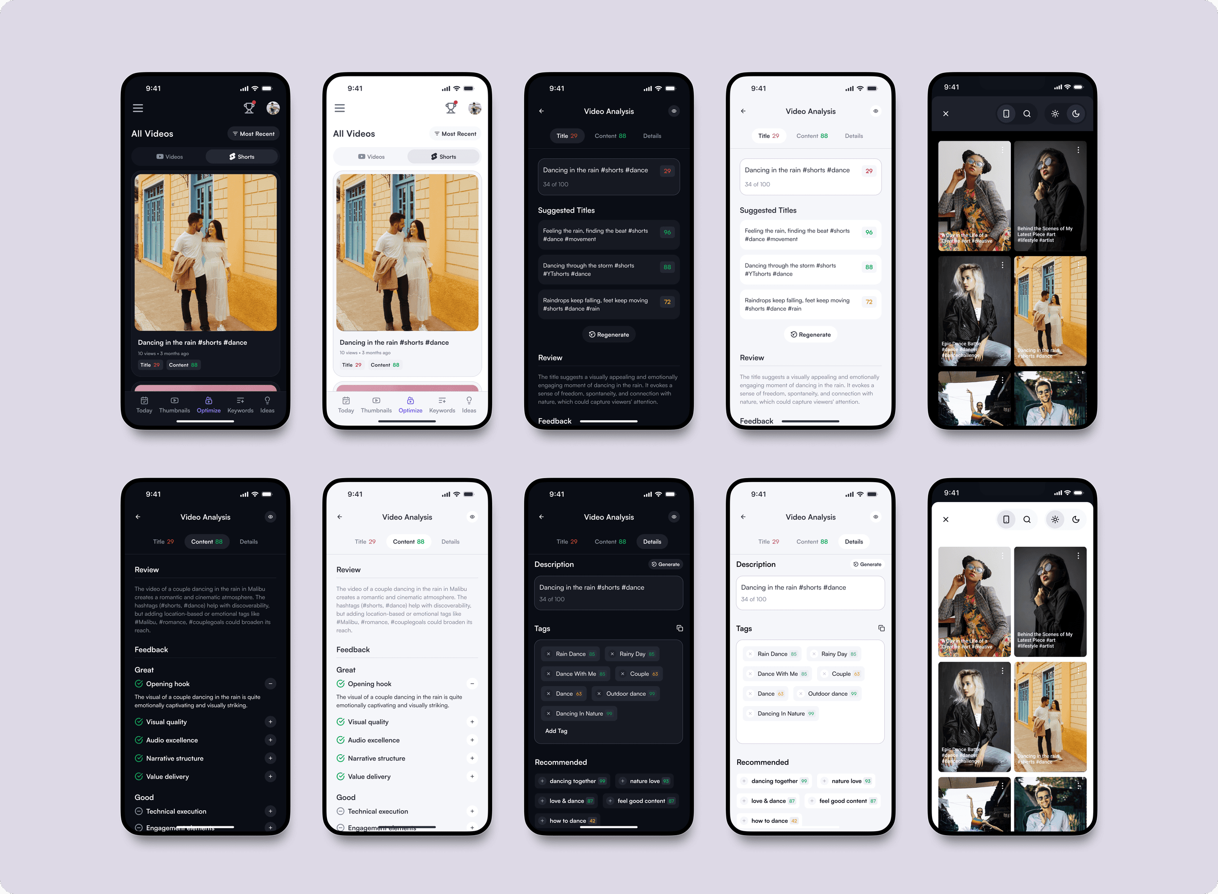 When users click on a video, they are taken to the video analysis page. Here, they can view suggested titles, a review of the title and feedback, as well as the criteria on which the title score is based.